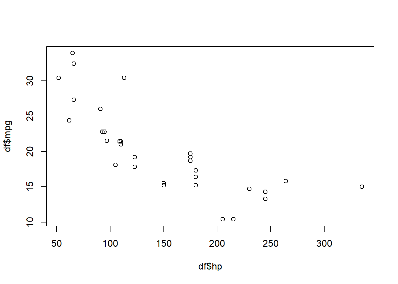 cor(df$hp,df$mpg, use="complete.obs")[1] -0.7761684