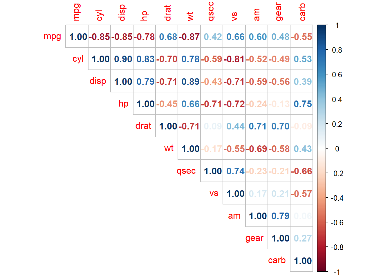 A primeira vista pode parecer uma afirmação óbvia que, quanto mais potente for o motor de um carro maior será o consumo de combustível e por consequência menor será a quantidade de milhas por galão (no Brasil estaríamos falando de km por litro). Conseguimos, por intuição até mesmo dizer a direção dessa relação: quanto maior a quantidade de cavalos de força menor a quantidade de milhas por galão percorrida. Ou seja, a relação é negativa.